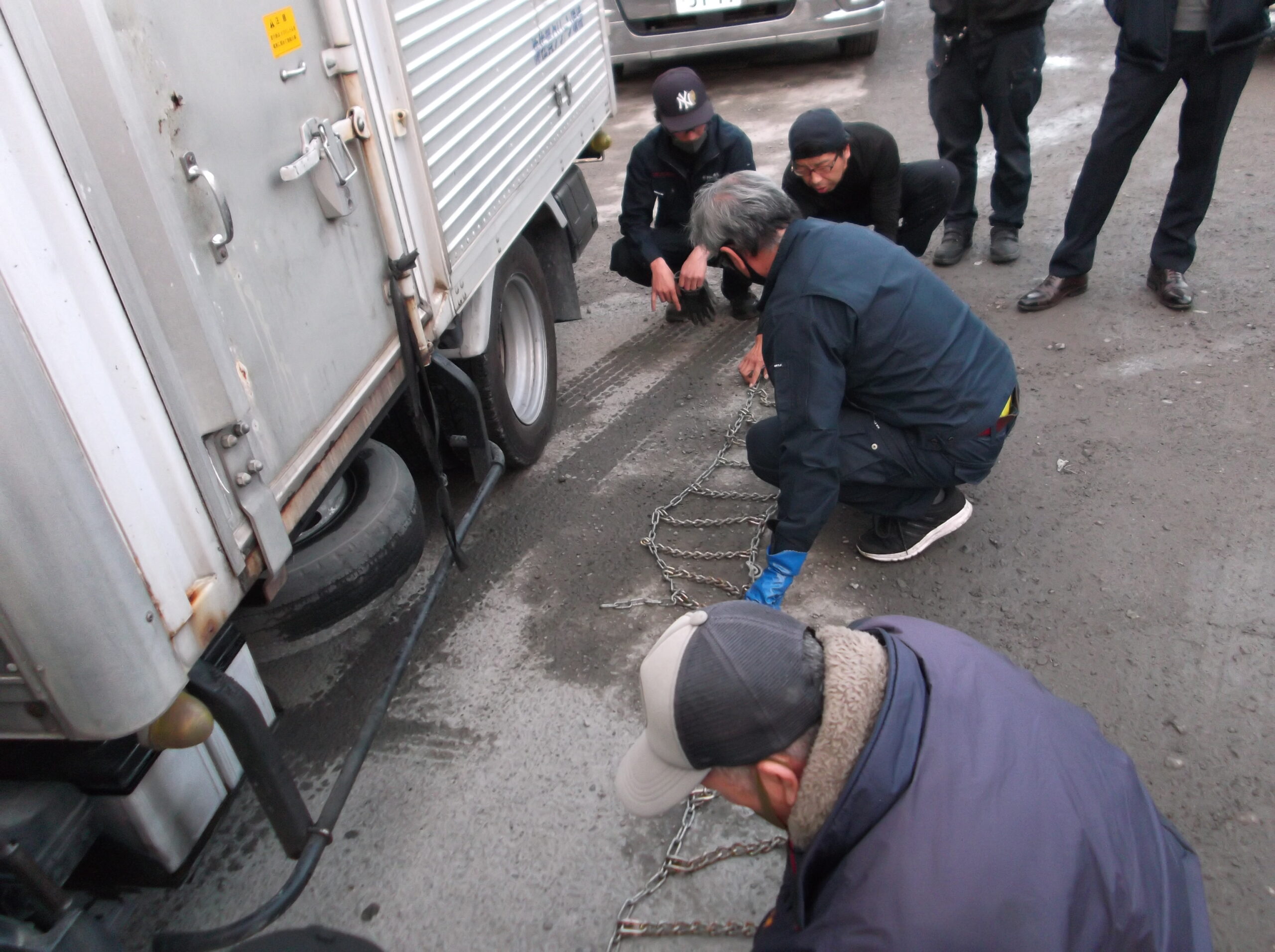タイヤチェーン取り付け講習会の実地について 2025.12.18 地域行事 12月17日、本社駐車場において、タイヤチェーン取り付け講習会を実地しました。 当社主任が講師を務め、約40人の職員が参加し、積雪時に備えて早めの装着、 走行時に再度締め付ける必要がある事などの指導が行われ、その要領を取得しました。 一覧へ